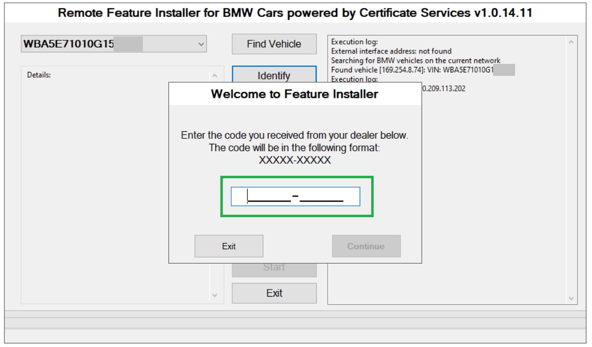 Po kodo pateikimo įrankis patikrins jį pagal jūsų VIN ir atrakins papildomas parinktis sąsajoje (kaip parodyta pavyzdžių ekranuose).